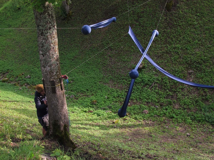 Splash. 2017 10x17x10m, Fabric, gym balls ARTEGROUND BALTIC 2017: 18.8.-31.8. VILJANDI, ESTONIA Arteground Baltic is part of Viljandi City Art Festival QQ. Culture of Nature – environmental art happening Workshop 20.8.-26.8. Opening on Sunday 27.8. http://qq.viljandi.ee/artists/agita-steinberga http://www.arteground.fi/index2017%20Viljandi.html